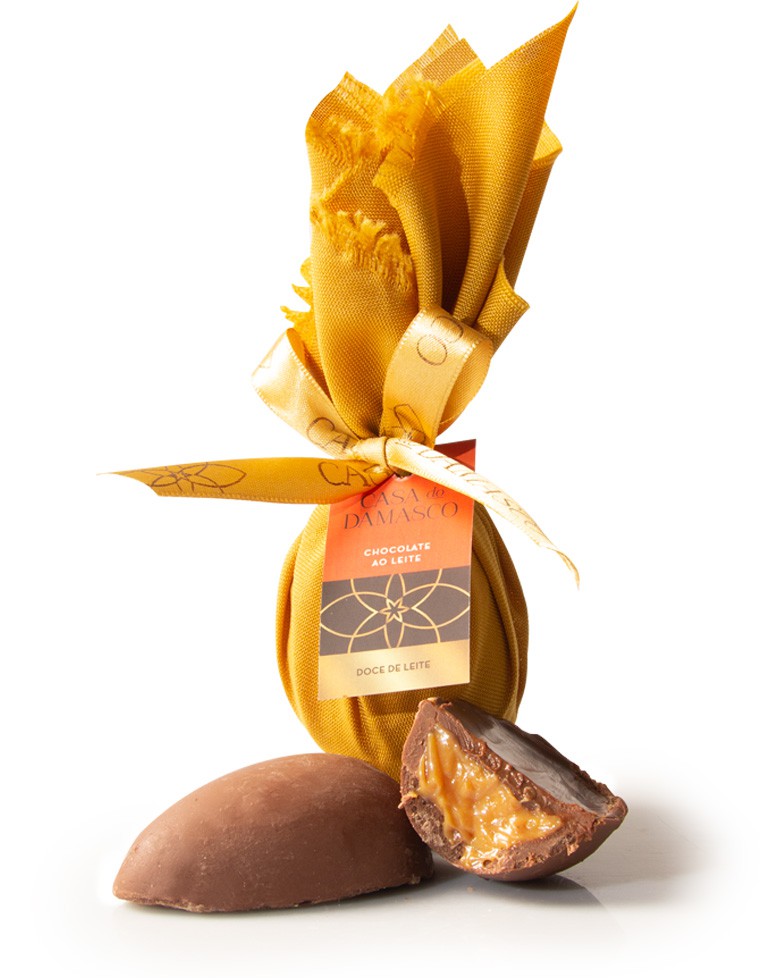 Feitos com chocolate ao leite nobre, nossos ovinhos são generosamente recheados com os melhores sabores: Doce de Leite, Doce de Coco, Geleia de Damasco & Flor de Sal, Creme de Nozes, Pedaços de Damasco e Creme de Pistache.